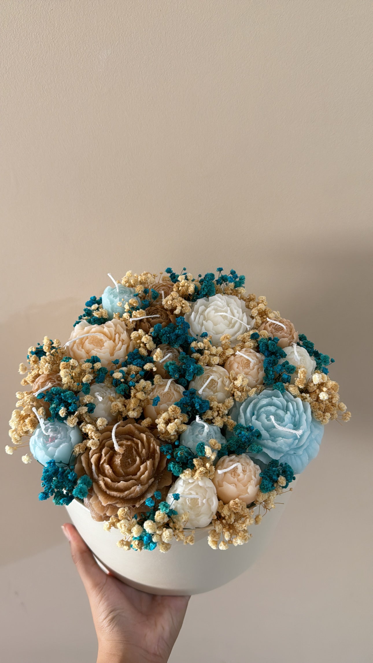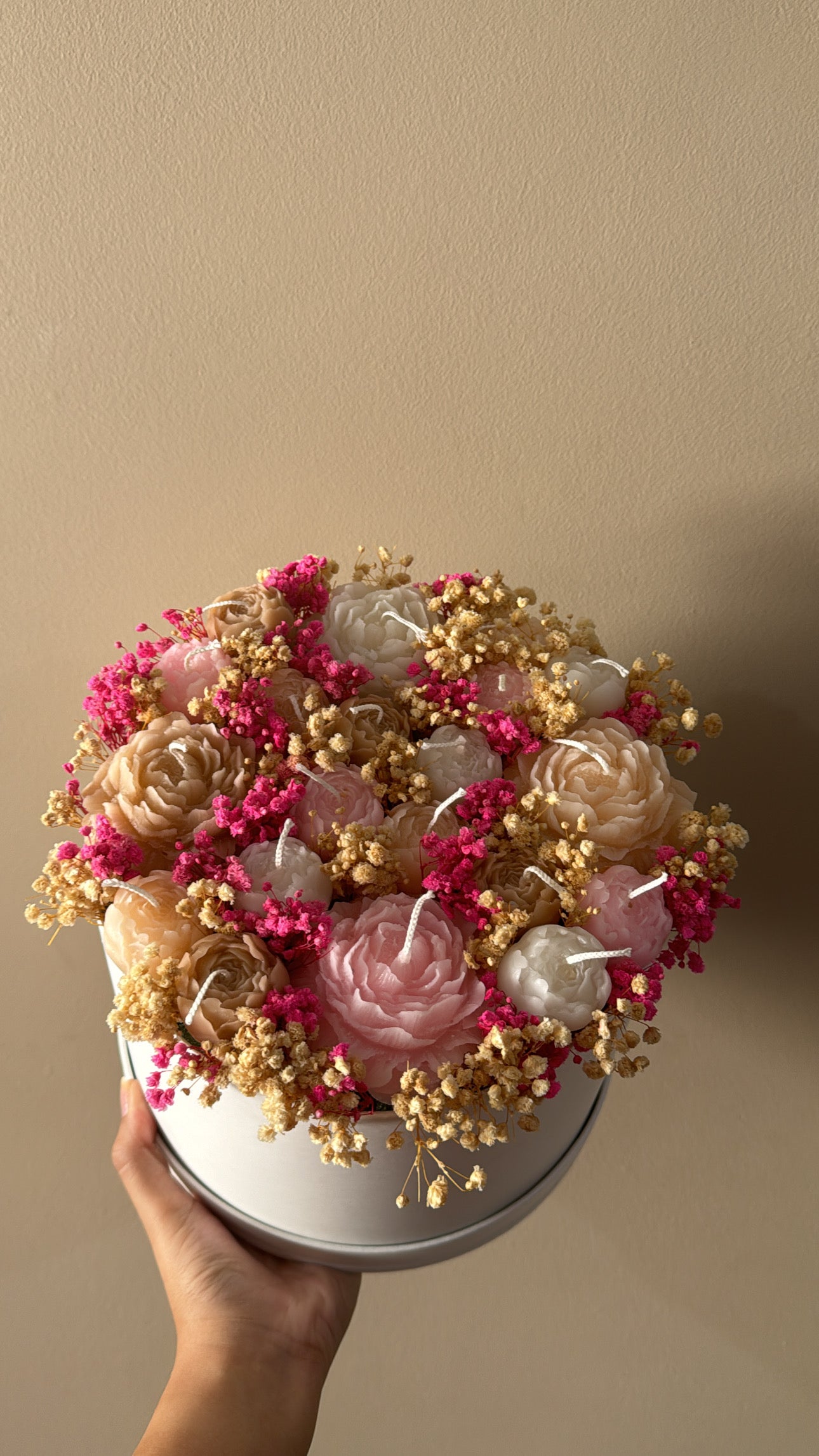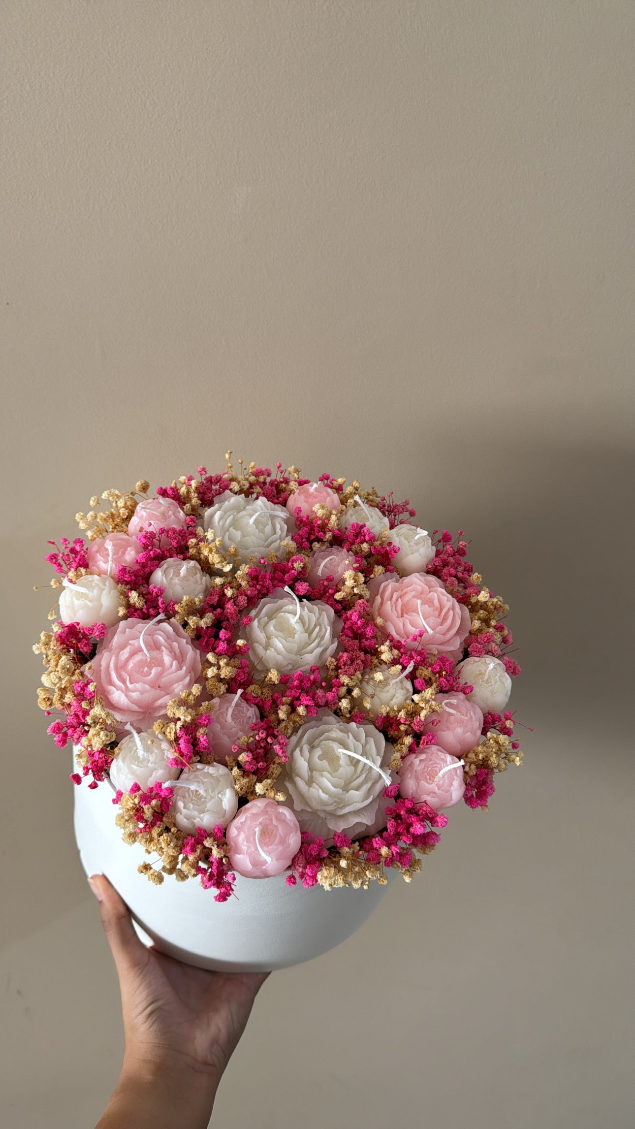 Un design luxueux qui sublime vos événements et vos intérieurs, garni de bougies parfumées en forme de fleurs 🌸.