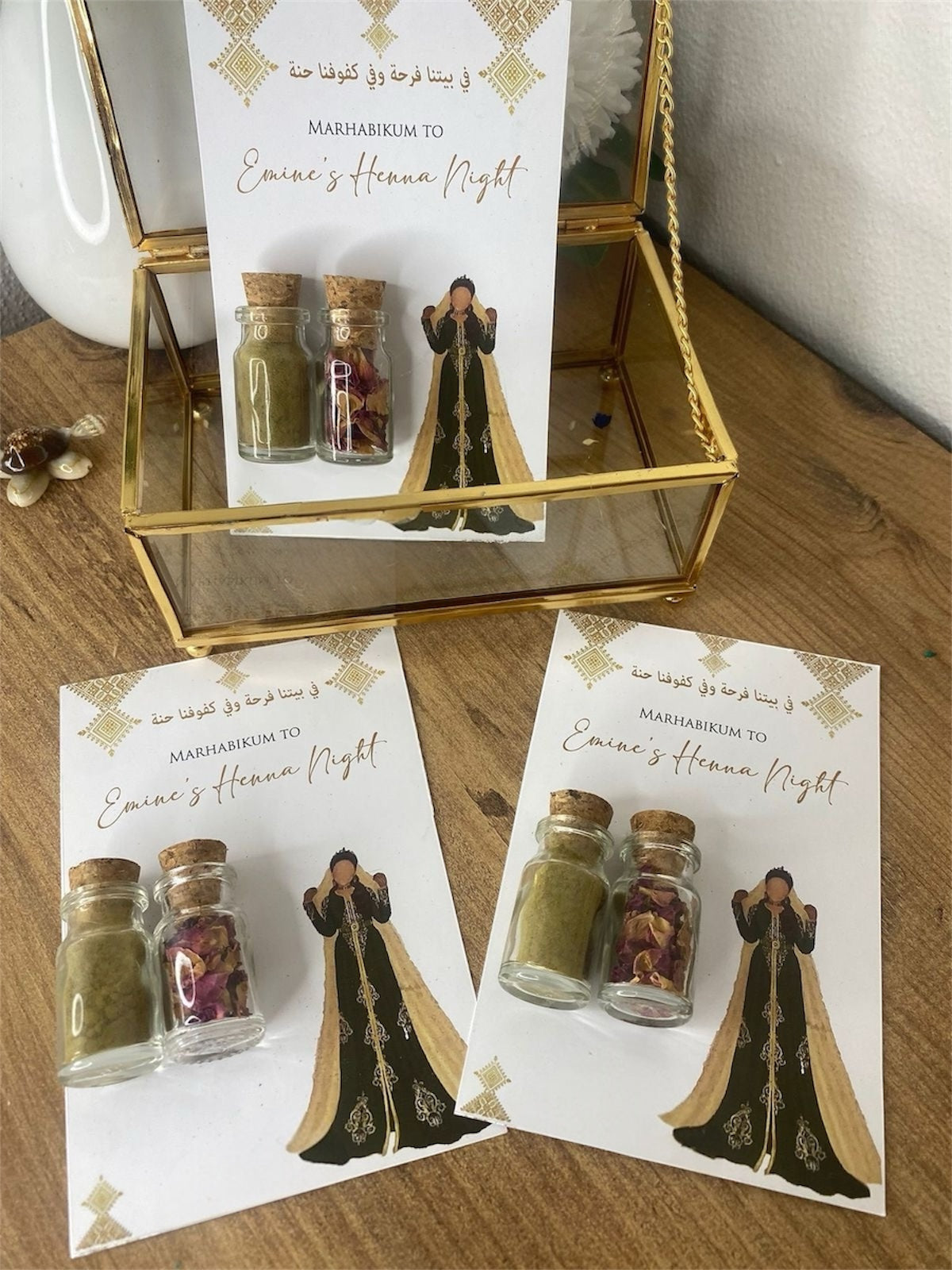 🌿 Deux fioles personnalisables au choix : henné en poudre, fleurs séchées, ou serghina